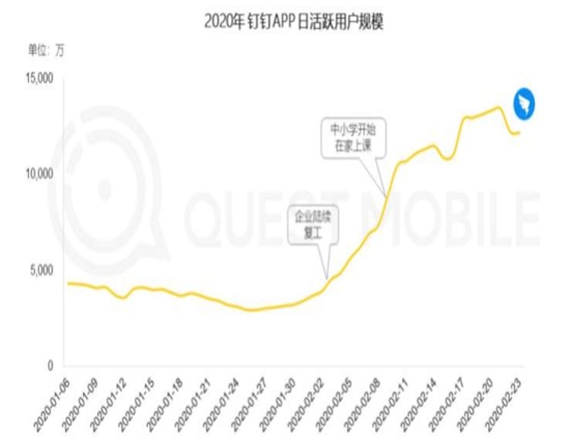Trustdata 數(shù)據(jù)顯示:2020 年1月1日至2月21日,釘釘日活躍用戶(hù)從 2610萬(wàn)升至1.5億,無(wú)疑成為這次疫情中單個(gè)產(chǎn)品增長(zhǎng)最讓人印象深刻的產(chǎn)品。
